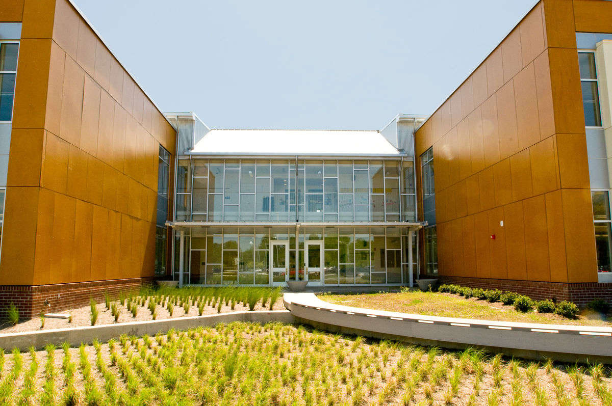 College Park Elementary School operates at a 55% better performance rate than building requirements. As a rainscreen, metal panels provide a breathable membrane to keep moisture from getting trapped inside the wall. This allows for better energy efficiency and indoor air quality, crucial for educational environments.