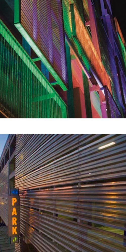Parking garage screen walls serve a variety of functions: transforming utilitarian structures into welcoming facilities, signaling parking boundaries, and providing an attractive backdrop in areas that can be dark and unwelcoming.