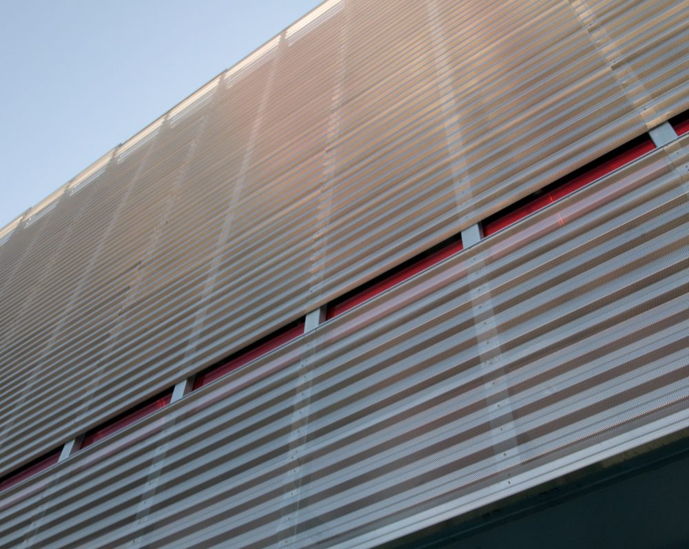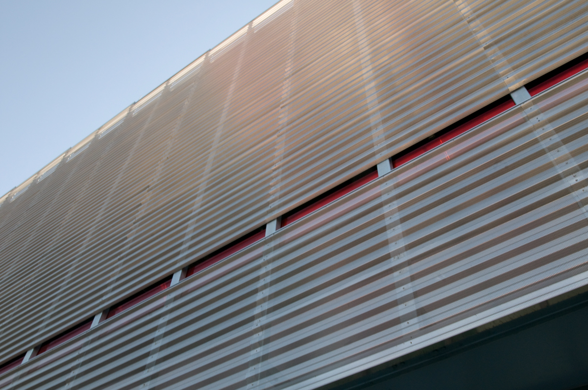 - By incorporating a perforated, stainless steel wall system, the design team created an environmentally sustainable building offering many benefits to those working within and those living in the surrounding neighborhood