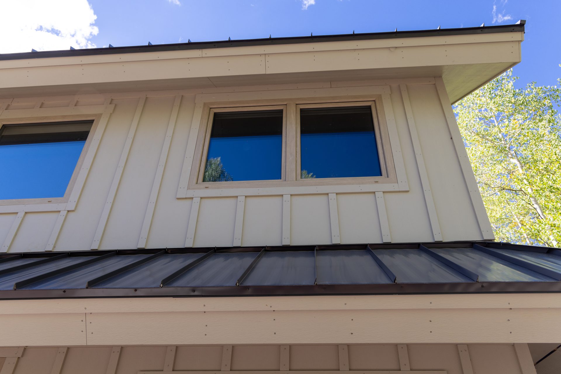 For this project, it was essential to utilize innovative products that boast extreme performance, all while complementing the design of the build. One of the home’s most prominent features is its metal roofing system. The material, donated by Fabral, is our classic 24-gauge 1 ½” SSR metal roofing panels in Charcoal. This roof makes it easy to achieve structural stability and is designed to perform at optimum levels year after year.