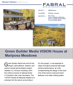 Green Builder Media has built its first off-grid, self-sufficient, resilient, and carbon-neutral demonstration project. Nestled in a 123-acre inholding within the millions of acres of national forest in Colorado’s San Juan Mountains, The VISION Houses at Mariposa Meadows is emersed into the nature surrounding it.