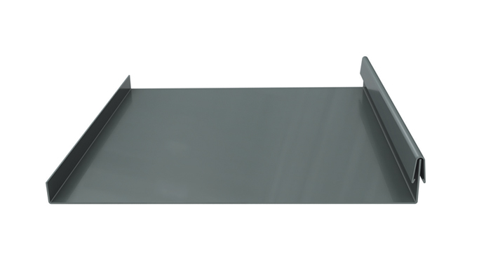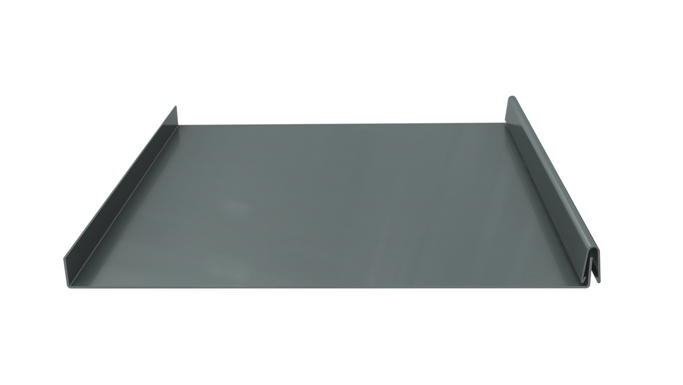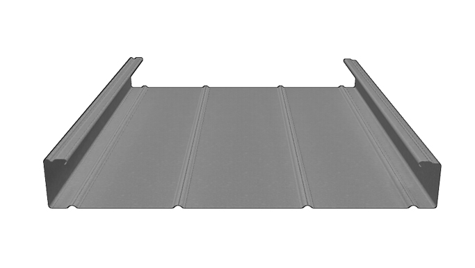 A snap-together panel for easy installation with no mechanical seaming tool required. Ideal for installation over solid substrate and open framing.